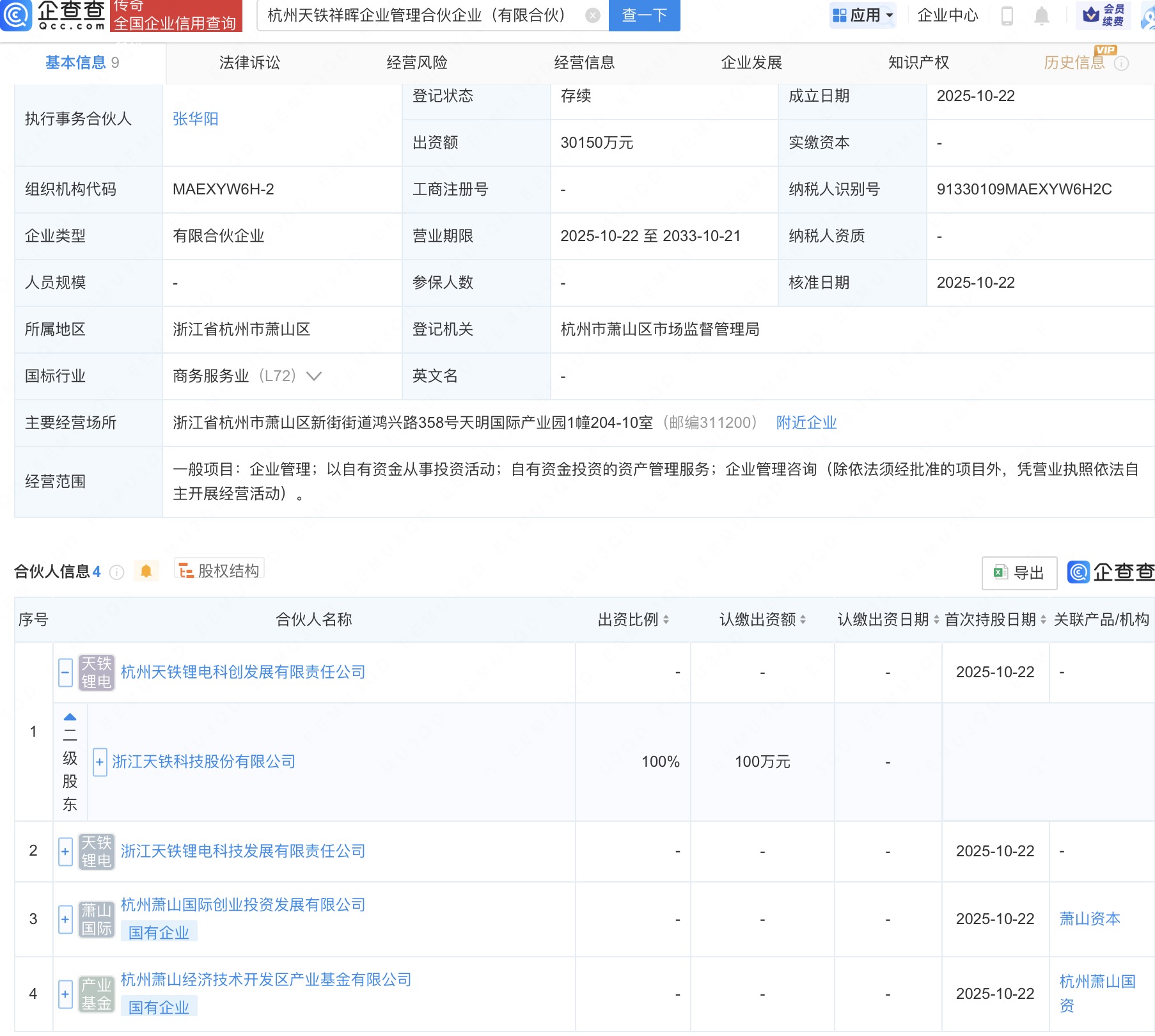 正规股票配资官网查询 天铁科技等在杭州新设企业管理合伙企业